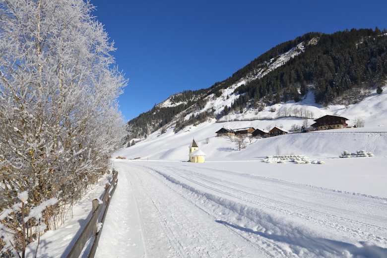 Beschauliche Winterwanderung entlang der Ache von Großarl im Großarltal bis nach Hüttschlag. Der leichte Wanderweg wird im Winter geräumt und ist sogar kinderwagentauglich. Ausgangspunkt ist der Reitsteig Großarl.