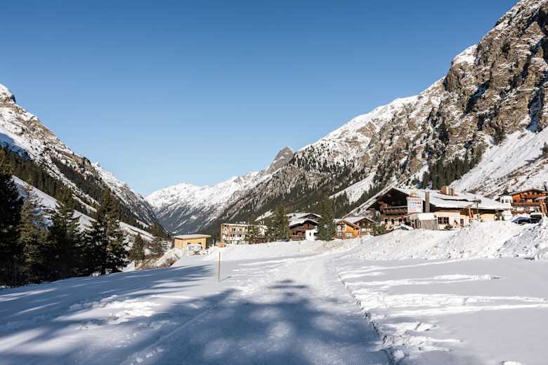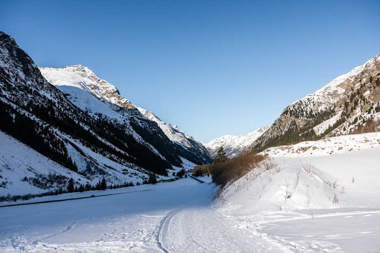 Von der Bushaltestelle Mandarfen Rifflseebahn wandern Sie talauswärts bis zum Übungslift Mandarfen. Anschließend folgen Sie den präparierten Winterwanderweg Richtung Tieflehn. Nun der asphaltierten Straße bis zum Almhof folgen, bevor die Wanderung wieder auf einem präparierten Winterwanderweg Richtung Plangeroß führt.