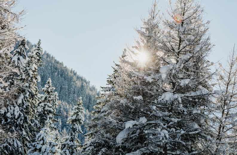 Der Pischenwald säumt Oberwald verträumt und märchenhaft. Der gemütliche Rundweg im tief verschneiten Bergwald mit den mächtigen Lärchen lädt zum Entspannen ein.