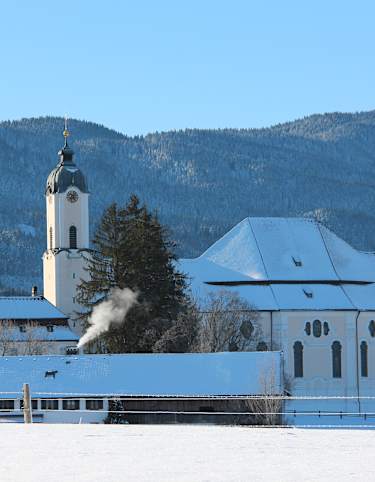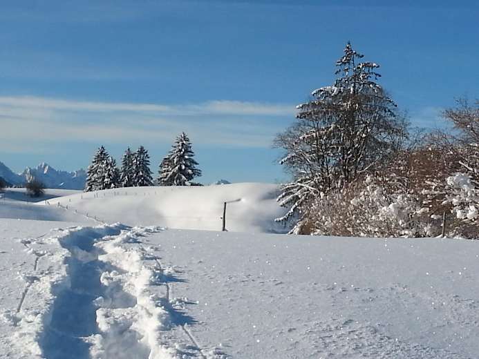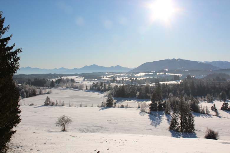 Plane deine Winterrunde so, dass du am Aussichtspunkt Mühlegg eine kleine Brotzeitpause mit Thermoskanne einlegst und das Alpenpanorama vom Staffelsee bis zu den Ammergauer Bergen auskostest, bevor du unten im Dorf in der Bäckerei oder im Gasthof zum Strauß in Wildsteig noch eine regionale Stärkung nachschiebst.