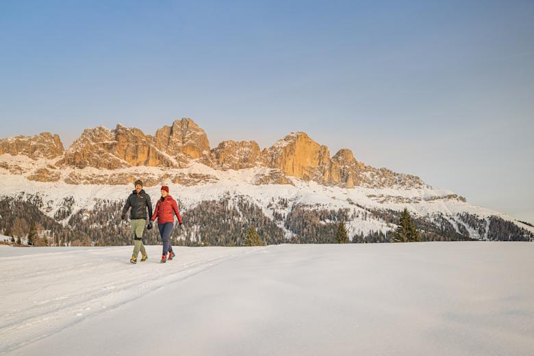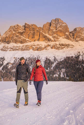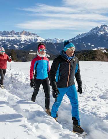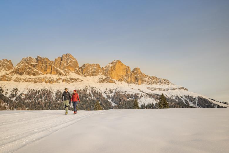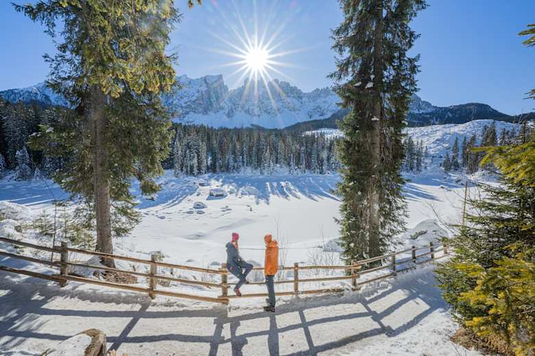 Die Winterwanderung startet am Karer See im Eggental und führt gemütlich durch verschneite Wälder zu den Frinwiesen, bevor es weiter zur Frommer Alm geht. Unterwegs eröffnen sich immer wieder beeindruckende Blicke auf die Dolomiten, allen voran der majestätische Rosengarten. Am Ziel lockt die Frommer Alm mit regionalen Südtiroler Köstlichkeiten und einer warmen, einladenden Atmosphäre. Eine ideale Tour am Fuße des Latemar, um die Winterlandschaft in Ruhe zu genießen.