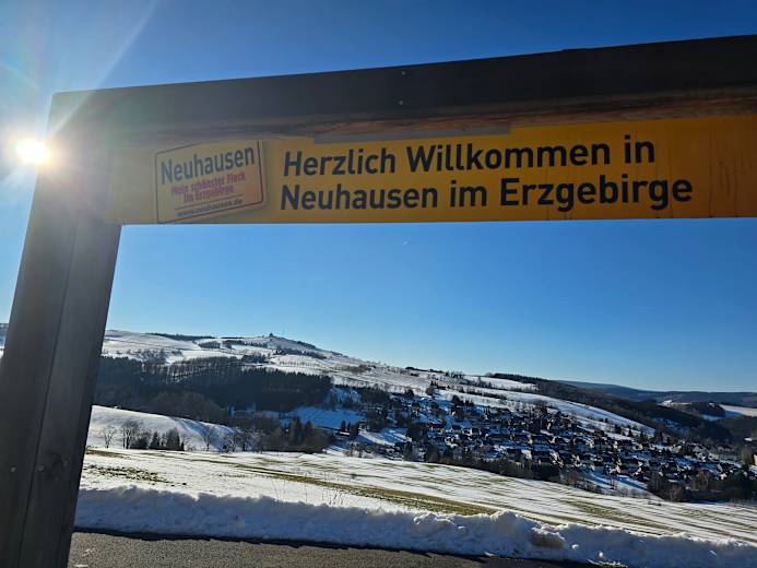 Diese aussichtsreiche Rundtour führt zu den schönsten Panoramapunkten rund um Neuhausen im Erzgebirge. Man startet die leichte Winterwanderung im Zentrum von Neuhausen und wandert über den Goldhübel hinauf in die Nähe des markanten Schwartenbergs (789 m). Die Route verläuft auf dem Kuhdreckflussweg und passiert die Dachsbaude, wobei man stets die weiten Ausblicke über das verschneite Osterzgebirge genießt. Über den Schwartenbergweg führt der Weg schließlich wieder zurück zum Ausgangspunkt im Ortskern.