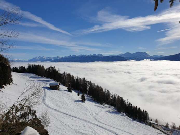 Diese mittelschwere Winterwanderung führt von Terenten in der Region Gitschberg Jochtal hinauf zur Pertinger Alm, die auf der Sonnenseite des Pustertals liegt. Im Winter bietet sie eine traumhafte Kulisse.
