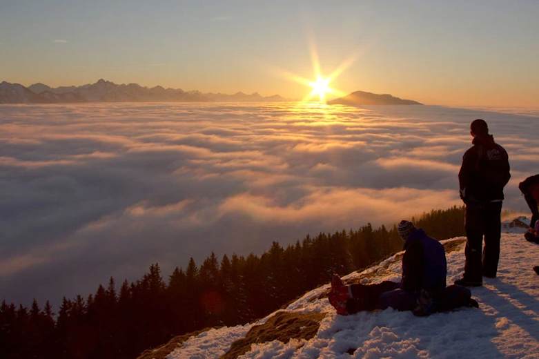 Da die Schwebebahn derzeit Pause macht, belohnen Sie sich für den sportlichen Aufstieg am besten mit einer Einkehr in der urigen Hörnlehütte, wo Sie bei einer heißen Suppe den Logenplatz-Blick auf den Staffelsee genießen können.