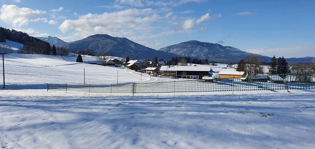 Gönn dir bei dieser entspannten Tour unbedingt einen Moment der Ruhe, wenn du den Ortsteil Kraggenau hinter dir lässt. Der Weg zum Aura Hotel ist zwar kurz, bietet dir aber bei klarem Winterwetter einen fantastischen Weitblick über das Alpenvorland.