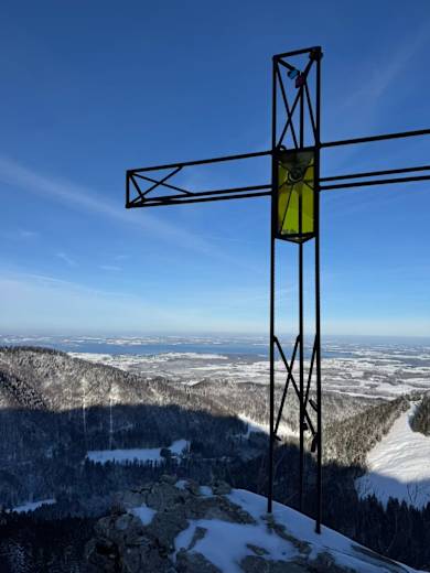 Der kleine Gipfel ist schnell erreicht und bietet einen sensationellen Blick zum Chiemsee. In den Stunden vor Sonnenuntergang wird man hier mit einem ganz besonderen Licht verzaubert und beim Gipfelfeeling kann er locker mit den "großen" Bergen mithalten.