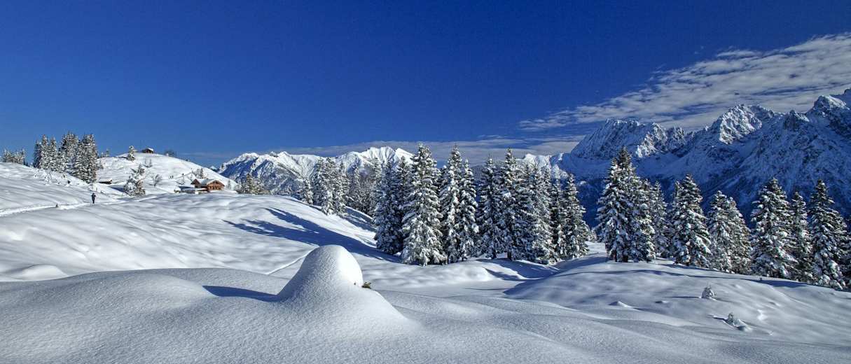 So stellt man sich Winterwandern vor: Diese Tour bei Mittenwald in der Region Alpenwelt Karwendel führt zum idyllischen Wildensee und damit in das Wandergebiet Kranzberg. Einzigartig machen diese Tour nicht nur der tierverschneite Wildensee, sondern auch das Panorama auf die umliegenden Berggipfel.