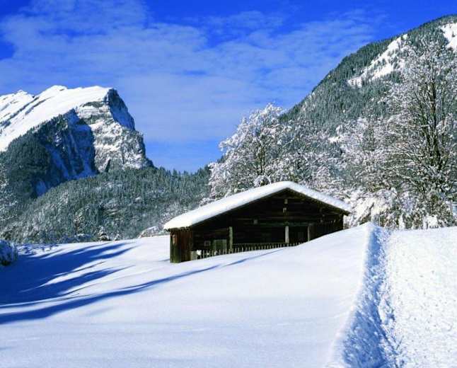 Winterwanderung in Au-Schoppernau zum Holdamoos: Auf der Halde wandert man im idyllischen Natur-Erlebnis Holdamoos. Lohnende Wintertour im Bregenzerwald in Vorarlberg.