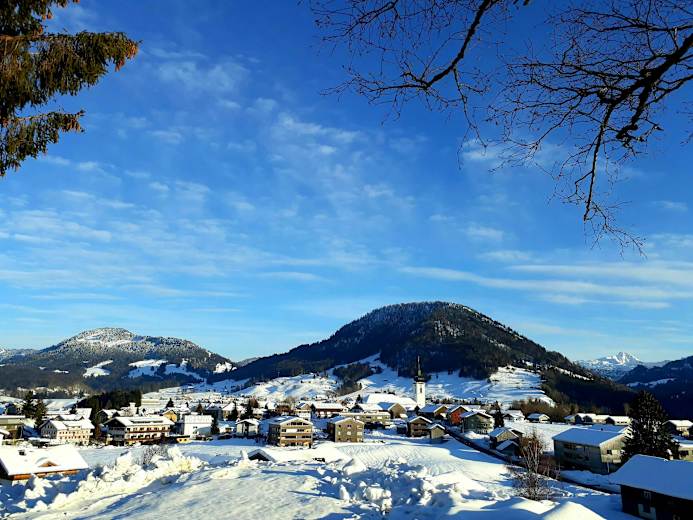 Auf dieser idyllischen Winterwanderung marschiert man vom Ortszentrum Hittisau zur Parzelle Brand und über Bütscheln und Korlen wieder zum Ausgangspunkt zurück. Lohnende Tour im Bregenzerwald in Vorarlberg.