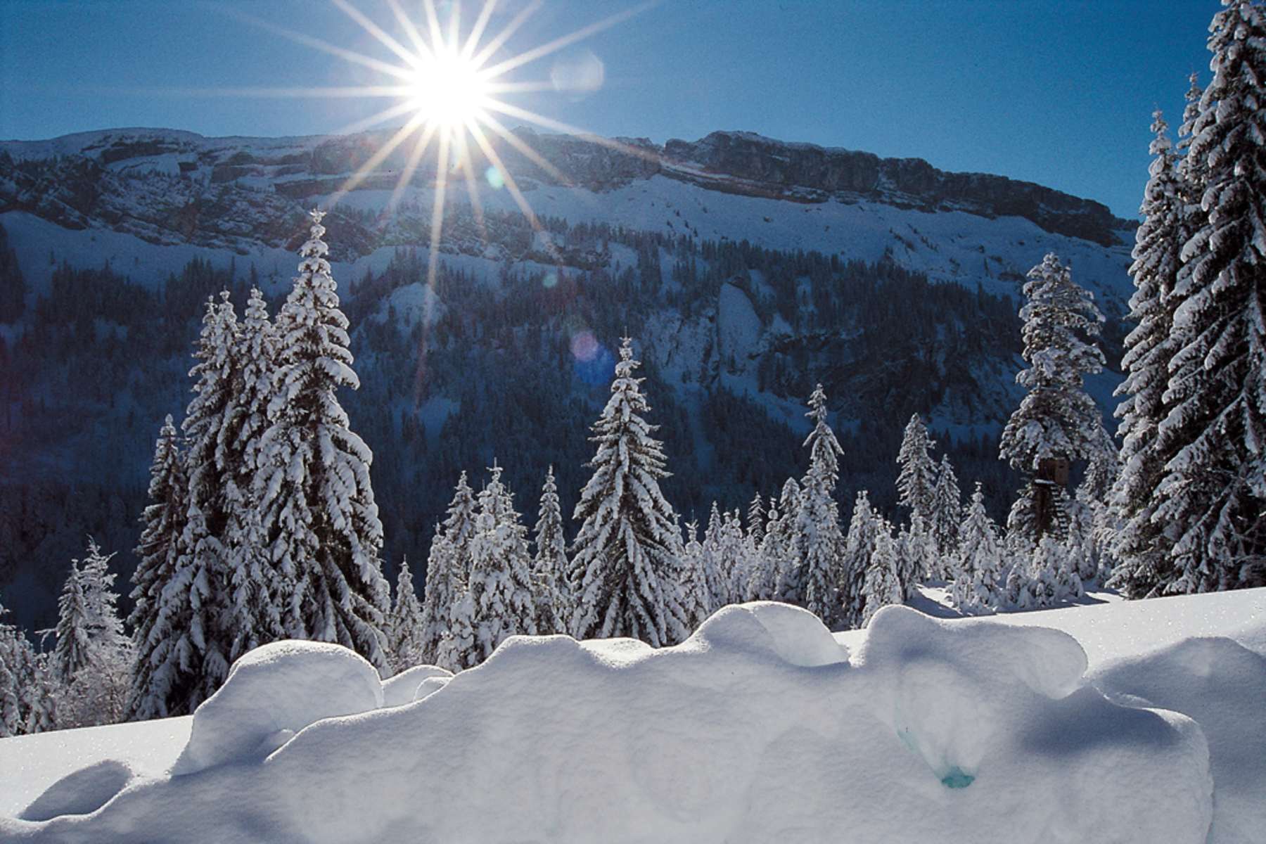 Im so genannten Bärenloch weist die Beschilderung „Piesen Alpen" auf einen Alpweg. Durch den Wald hinauf zum quellenreichen Sperberwinkel kommt der Frühsportler dann doch allmählich auf Betriebstemperatur. Die unterschiedlich steile, aber stets angenehm steigende Fahrbahn ist im unteren Bereich meist geräumt.