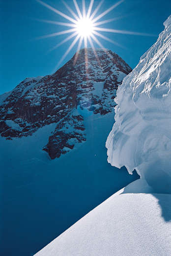 Umgeben von steilen Flanken und eisigen Felswänden führt die Route entlang beider Seiten des Bärgunttals, begleitet vom majestätischen Blick auf den Widderstein.
