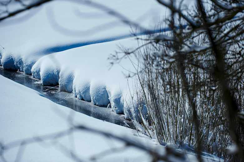 Ausdauernde Winterwanderung im Allgäu in Bayern, bei der es von Oberstaufen nach Weißach und wieder retour geht. Höhepunkte dieser aussichtsreichen Rundtour sind ein Wildpark, ein Stausee und drei Wasserfälle.