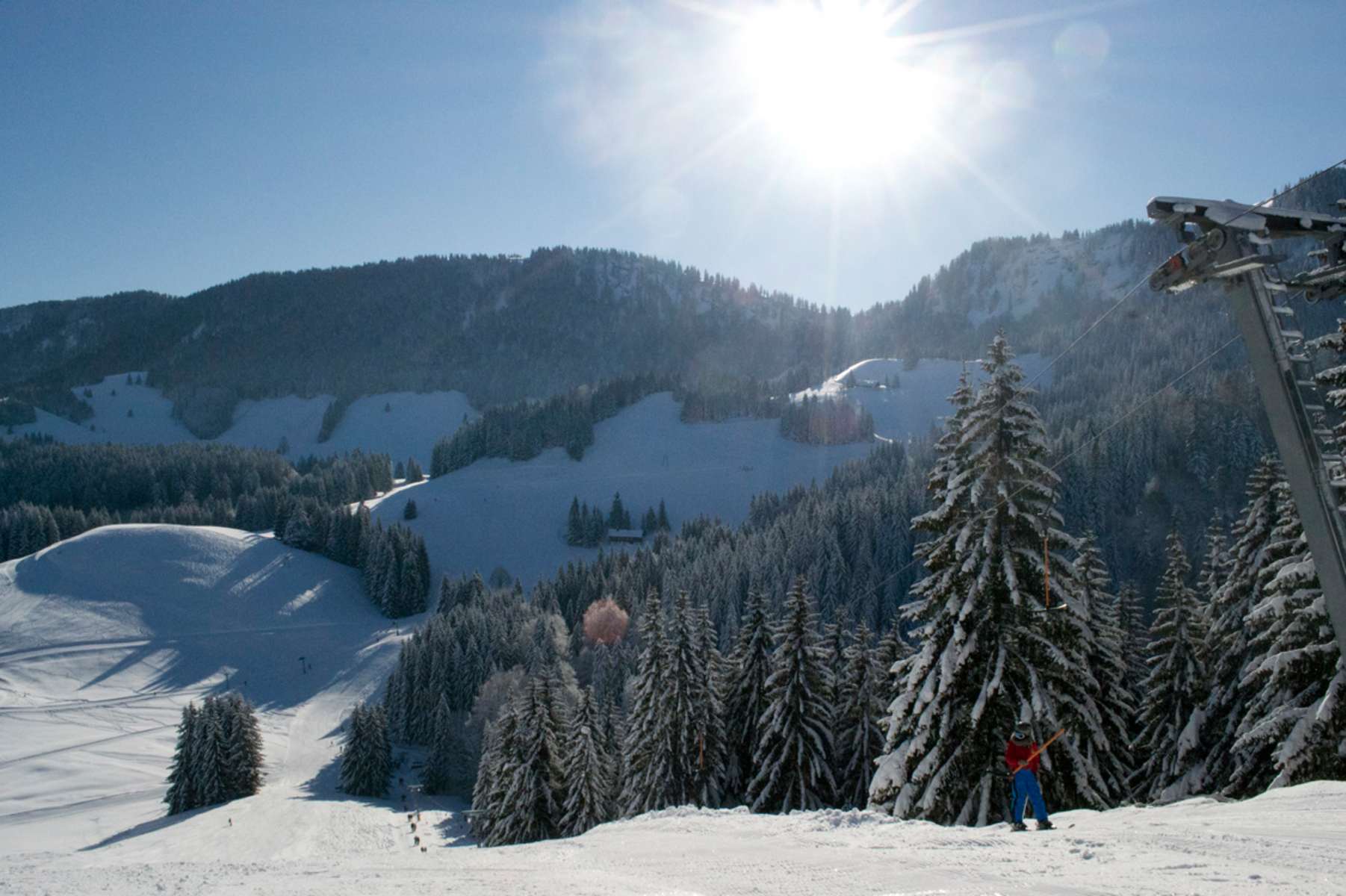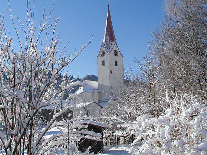 Leichte und familienfreundliche Winterwanderung nahe Oberstaufen in Bayern. Die leichte Rundtour auf einem geräumten Winterwanderweg führt von der Talstation der Hündlebahn entlang der Konstanzer Ach nach Thalkirchdorf über Salmas zurück zum Ausgangspunkt.