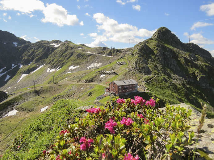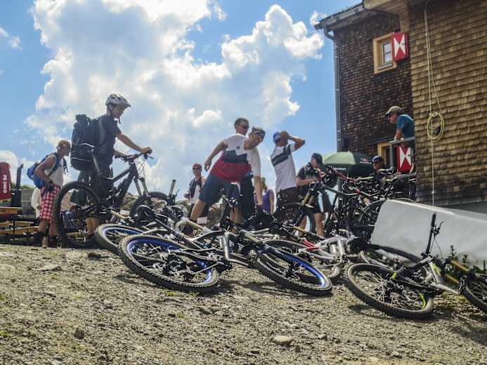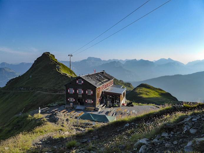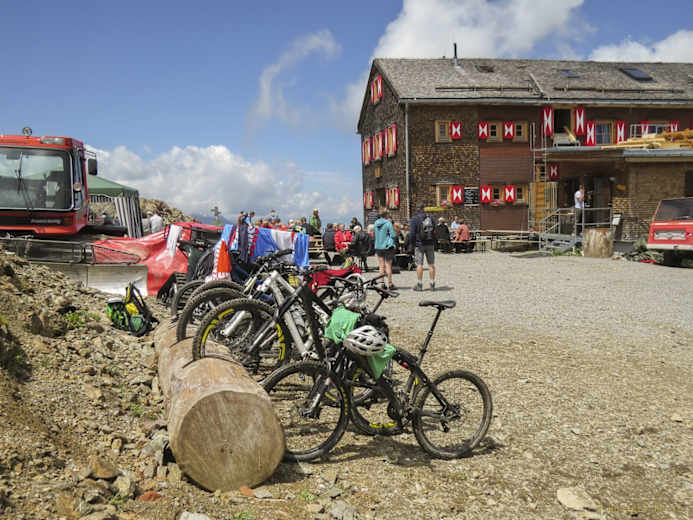 Hoch über Schruns liegt die Wormser Hütte, an einem vorgelagerten Grat des Hochjochs. Panorama vom feinsten, ausgezeichnete Küche und sehr nette Wirtsleute. Die urige Hütte hat sich in den letzten Jahren zu einem beliebten Spot auch bei technisch versierteren Bikern gemausert.