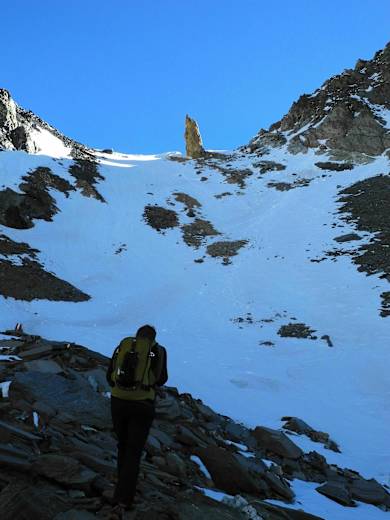 Zunächst marschiert man entlang der Schwarzach bis zur Oberhausalm. Vorbei an dem einzigartigen „Oberhauser Zirmwald” überquert man auf Höhe Oberhausalm die Schwarzach und schon geht es steil empor Richtung Rottenmanntörl. Schwer zu finden, bei schlechter Sicht fast unmöglich und der Abstieg Richtung Dabertal hat es in sich. Trotz mitgebrachter Steigeisen ist es kein leichtes Unterfangen, vom Törl auf die riesigen Moränen zu gelangen. Weicher Schnee und darunter loses Gestein verlangen Trittsicherheit und Konzentration.