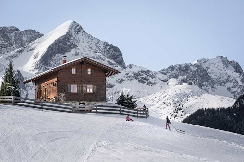 In Wamberg angekommen kann man sich erst mal kulinarisch stärken, bevor man anschließend über die mit einer weißen Decke überzogenen Almwiesen marschiert und durch die verschneiten Bergmischwälder zurück nach Garmisch-Partenkirchen und zum Olympischen Skistadion geht.