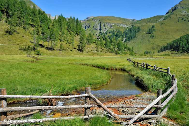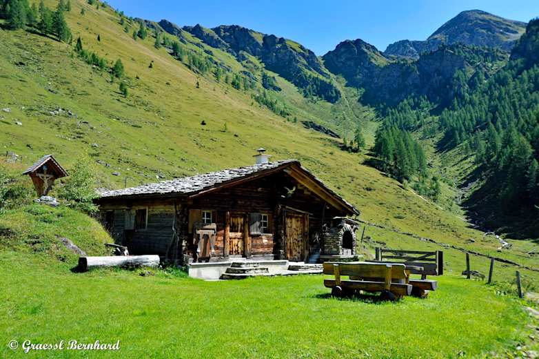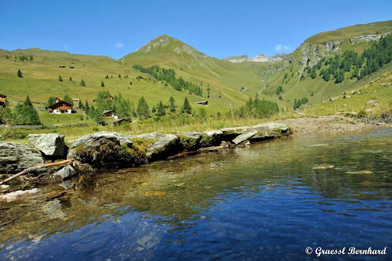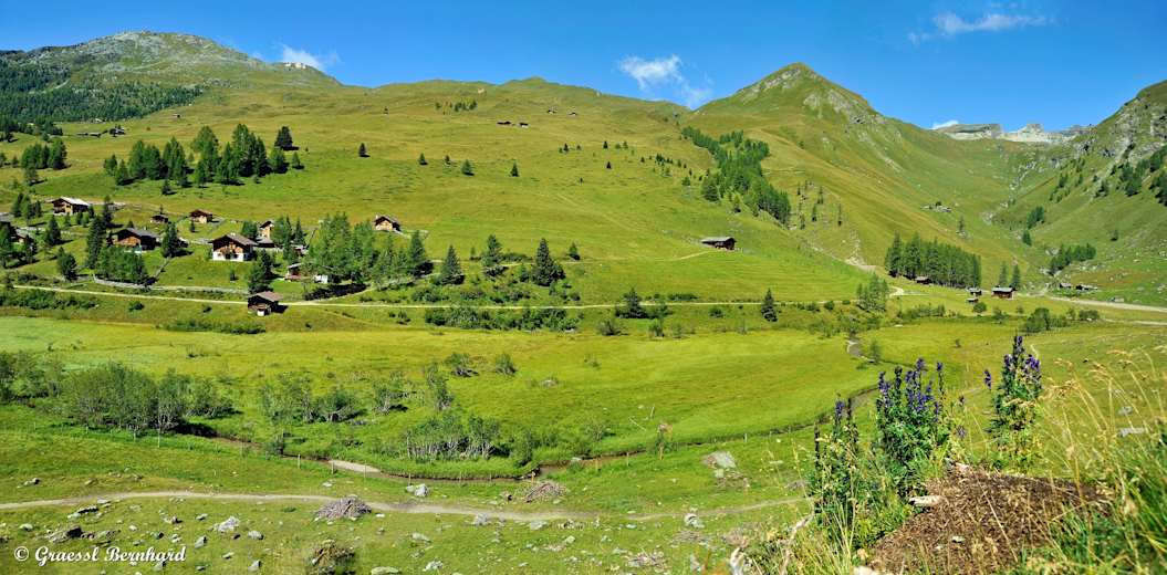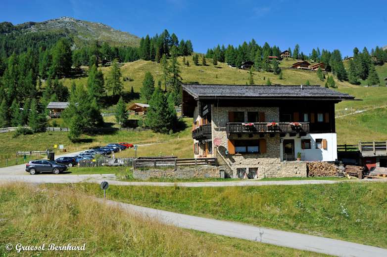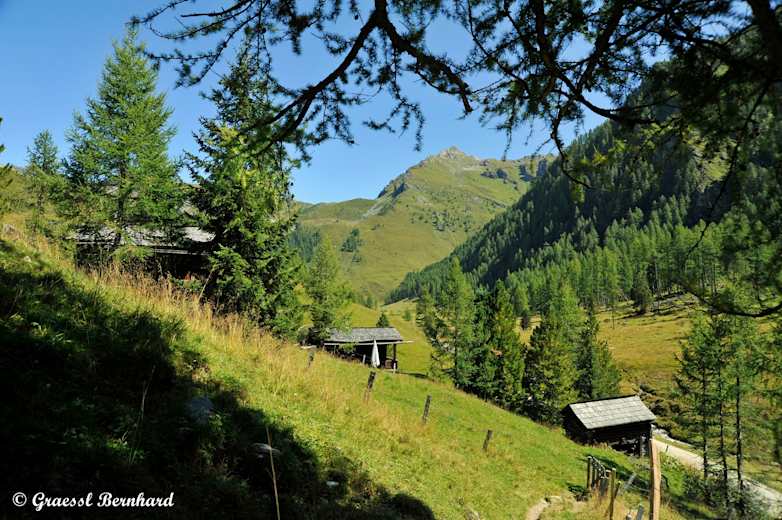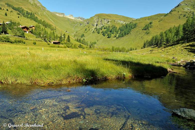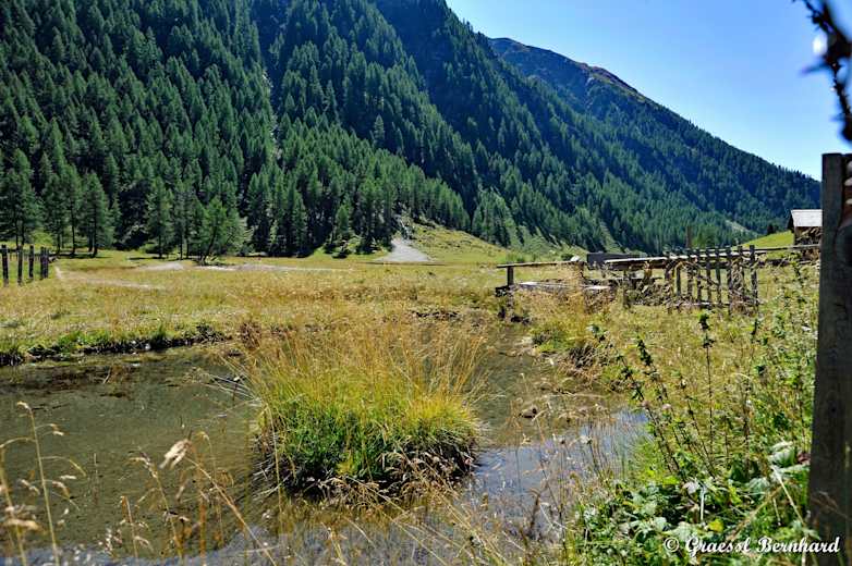Vorbei an Lärchwiesen gelangt man zu einem Gebirgsbach, der Lebensraum für die Wasserspitzmaus und Wasseramsel ist.Nach der Bachüberquerung führt der Weg an das hintere Ende des Tales, zur Bartler Alm. Am Wegabschnitt nach den Almhütten passiert man artenreiche und farbenprächtige Wiesen. Die landschaftlich reizvolle Umgebung kann man hier in aller Ruhe genießen.Der Rückweg bietet eine einzigartige Aussicht auf die reizvolle Landschaft.