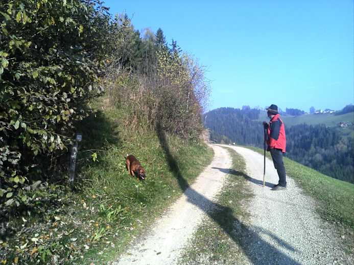 Man hält sich Richtung Süden, bis zum ehemaligem „Almdorf Grassler“ und wandert für einige Zeit auf Wald- und Wiesenwegen, bis man erneut auf die Aussichtsstraße trifft. Kurz darauf biegt man links in einen Hohlweg ein und hat bald wieder den Gasthof Sieber erreicht.