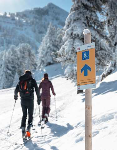 Der Weg ist gut beschildert und daher einfach zu finden. Die Abfahrt erfolgt über die Piste, damit auch Anfänger einen unbeschwerten Tourengenuss erleben können.