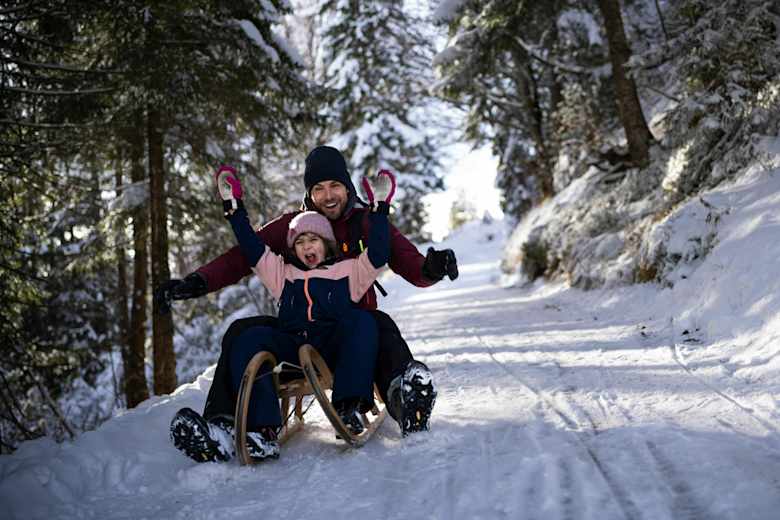 Rodeln mit der Familie am Kranzberg Foto: Alpenwelt Karwendel/ kreativ-instinkt.de
