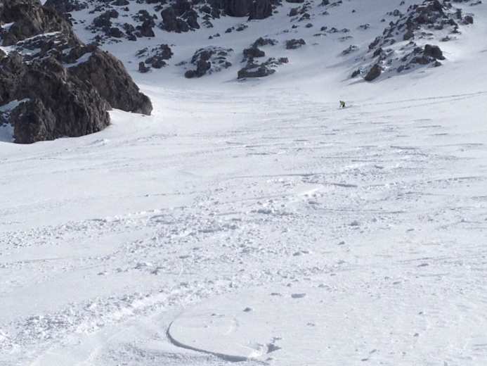 Die Tour ist ein Geheimtipp im Frühling bei kühlen Bedingungen. In den Nordhängen ist der Schnee noch locker und leicht zu fahren.