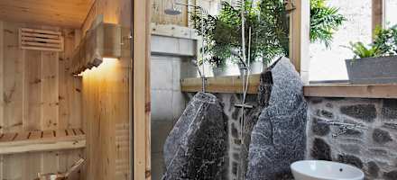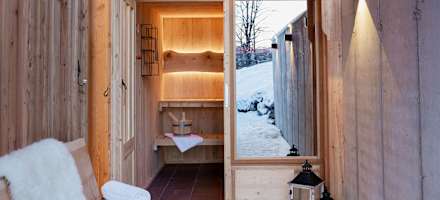 Wohlige Wellness: das Saunahaus im Garten oder direkt in der Ferienwohnung. Entspannt und mit tollem Bergpanorama.