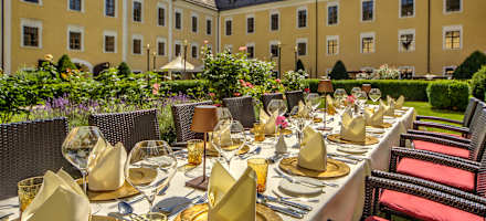 Sich einen Tag lang wie eine Prinzessin fühlen, beim Durchschreiten der Gänge die spannende Historie spüren und beim Essen das Gute aus der Region schmecken. In Ihrem Schlosshotel Mondsee begeben Sie sich auf eine Zeitreise in vergangene Jahrhunderte und dies mitten im idyllischen Örtchen Mondsee im Salzkammergut. Ob private Feier, Hochzeit, Seminar, Veranstaltung oder Urlaub – lassen Sie sich im gesamten Schloss von der historischen Atmosphäre verzaubern.